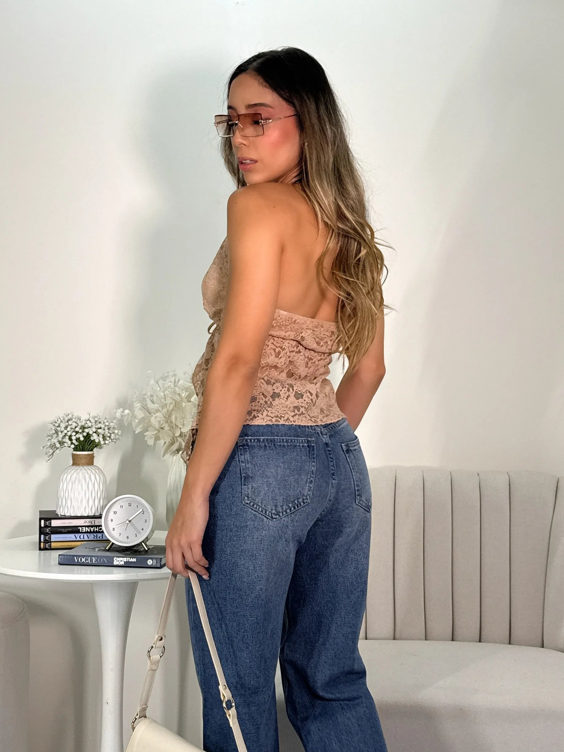 BLUSA ENCAJE CAIDA BEIGE MAREA DELANTERO