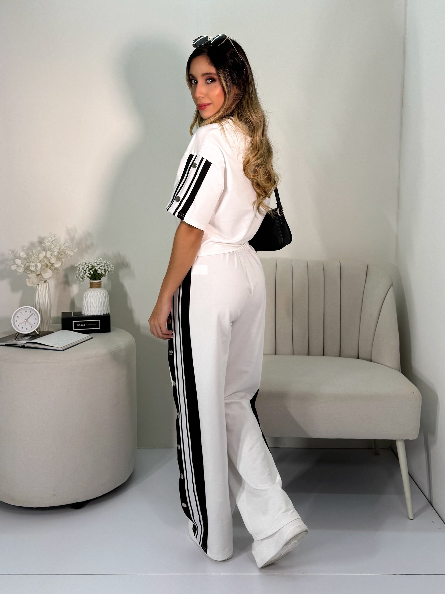 Conjunto Sport Pant Blusa Lineas Boton Blanco
