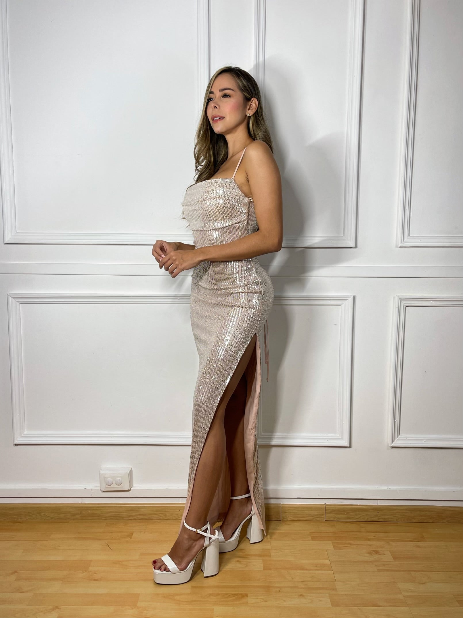 Vestido Largo Hombros Descubiertos Mangas Royal Blue