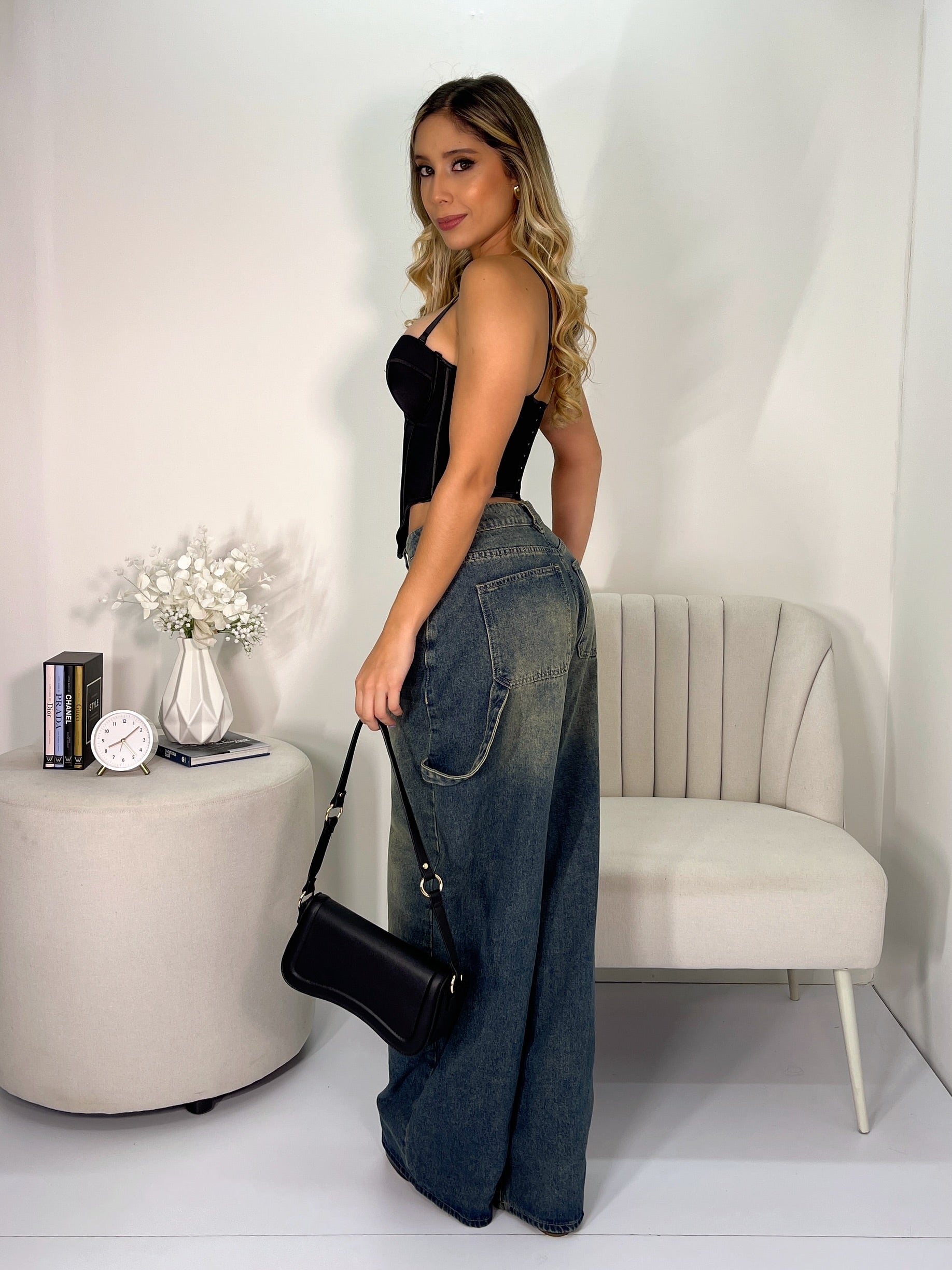 Jean Skinny Azul Oscuro Liso Tiro Alto