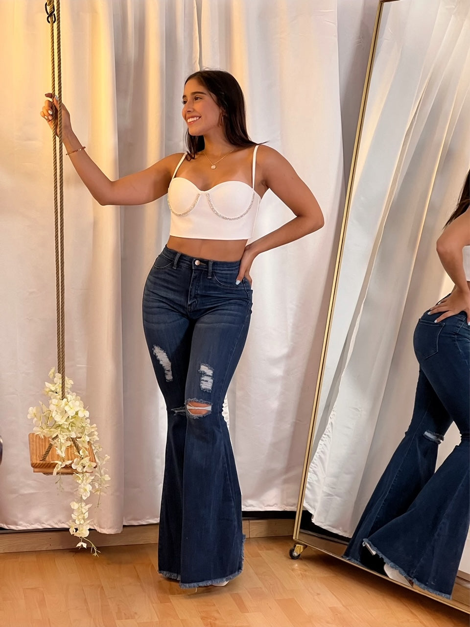Jean Vibrant Skinny Tiro Alto Azul Oscuro
