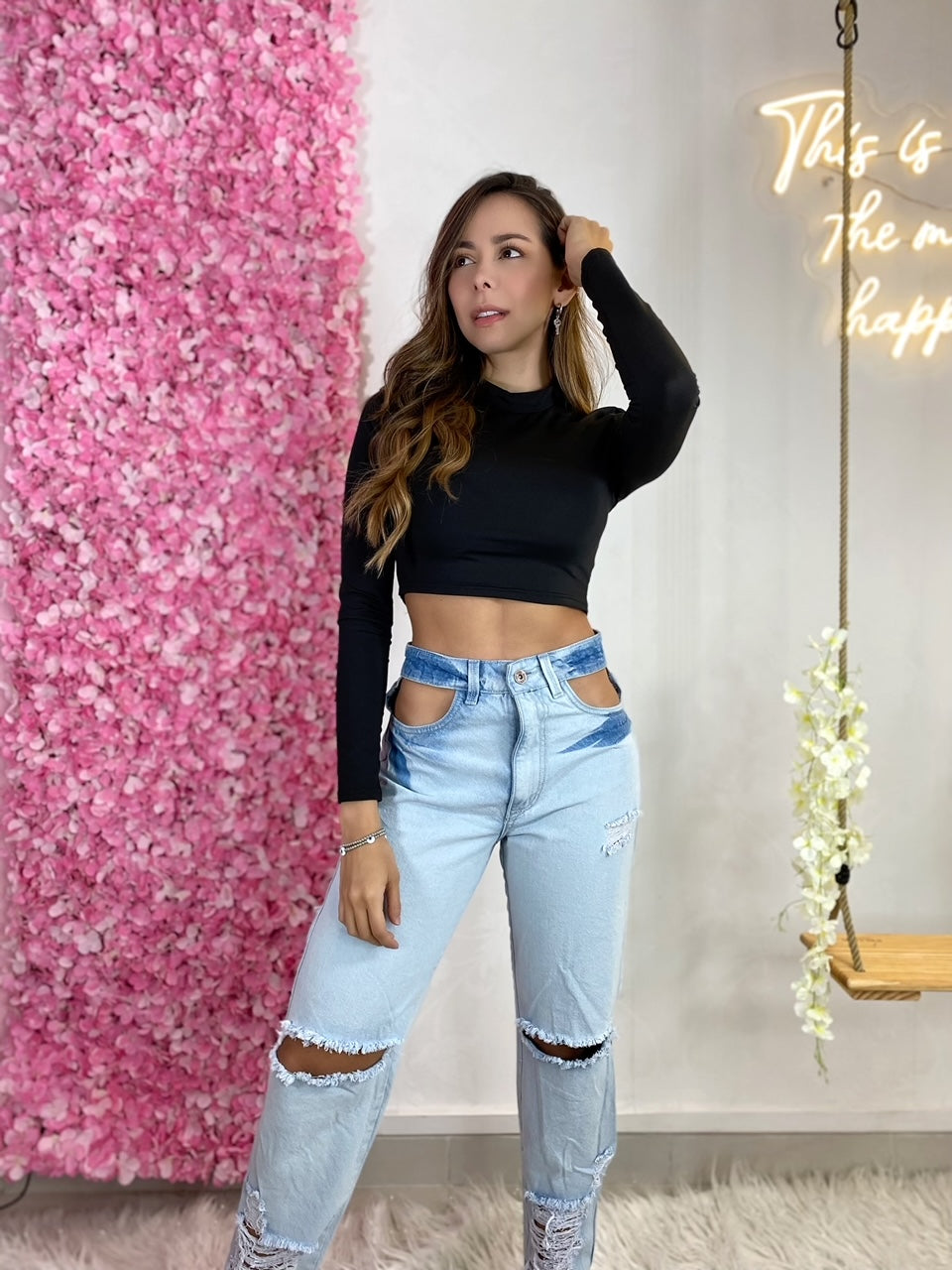 Jean Cello Destroy Slim Boyfriend Lavado Negro