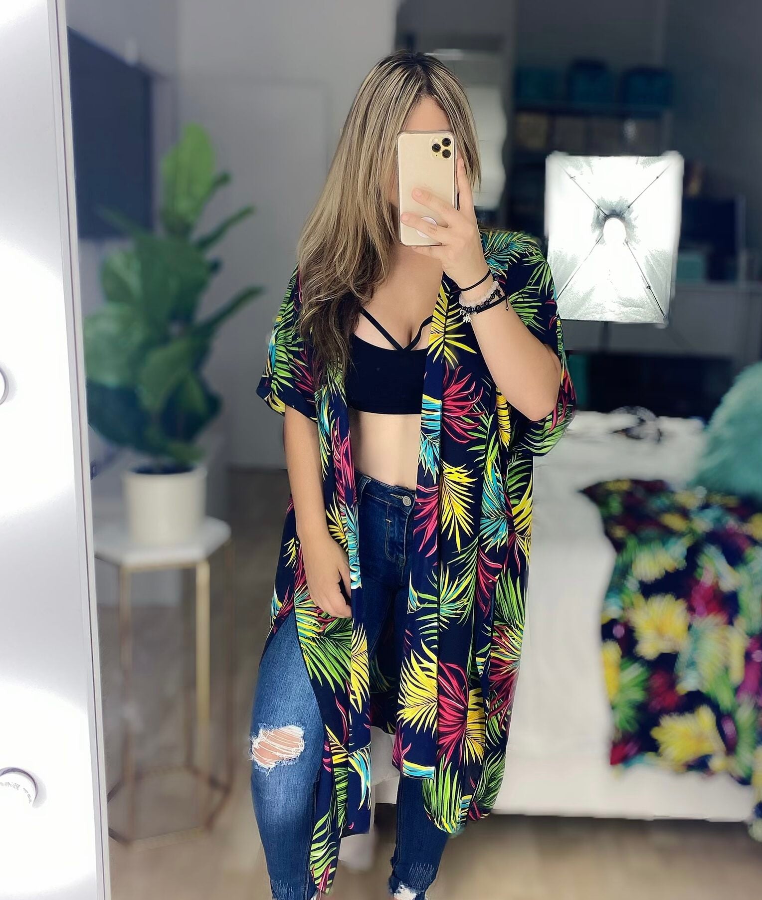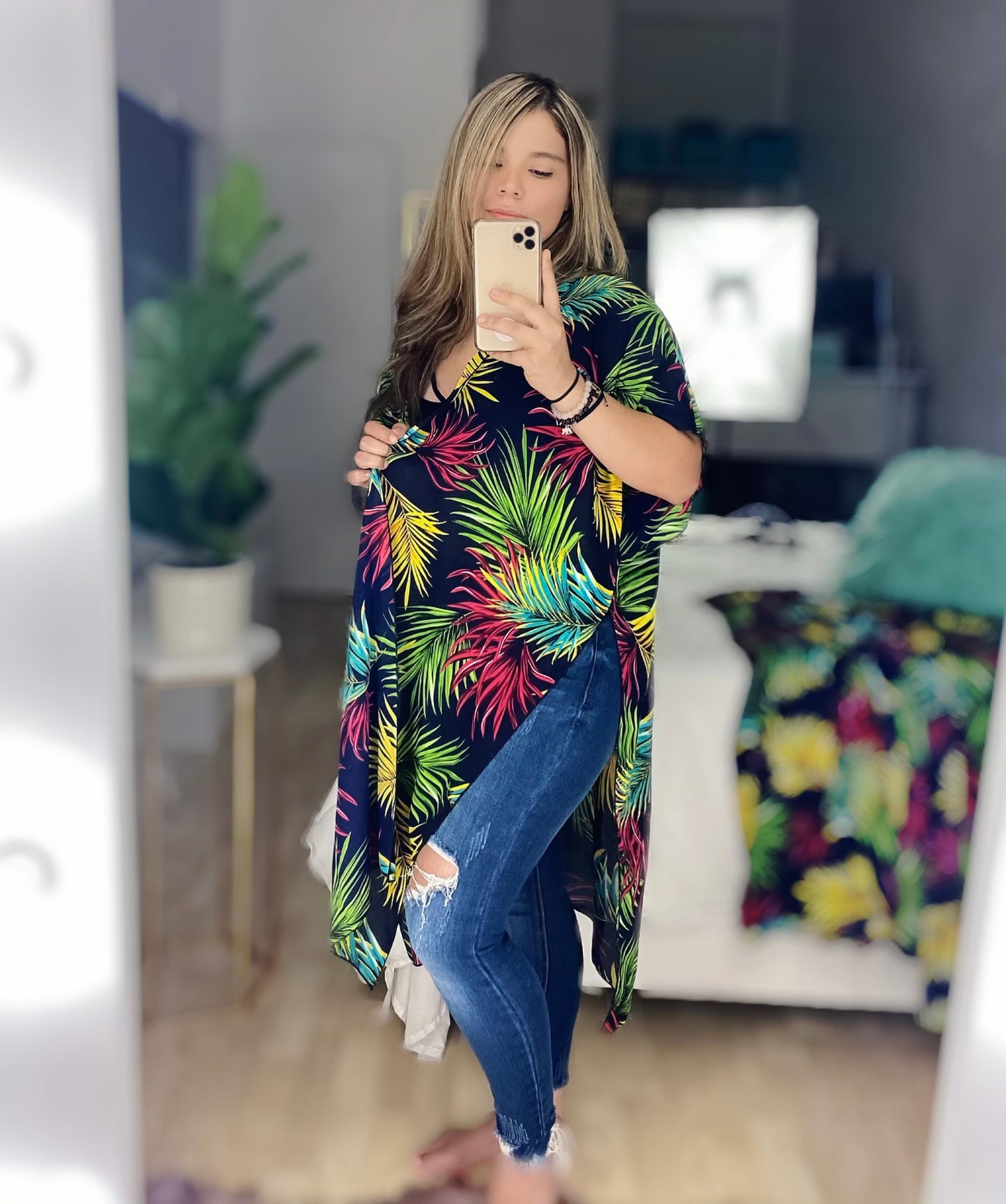 KIMONO LARGO AZUL MARINO TROPICAL