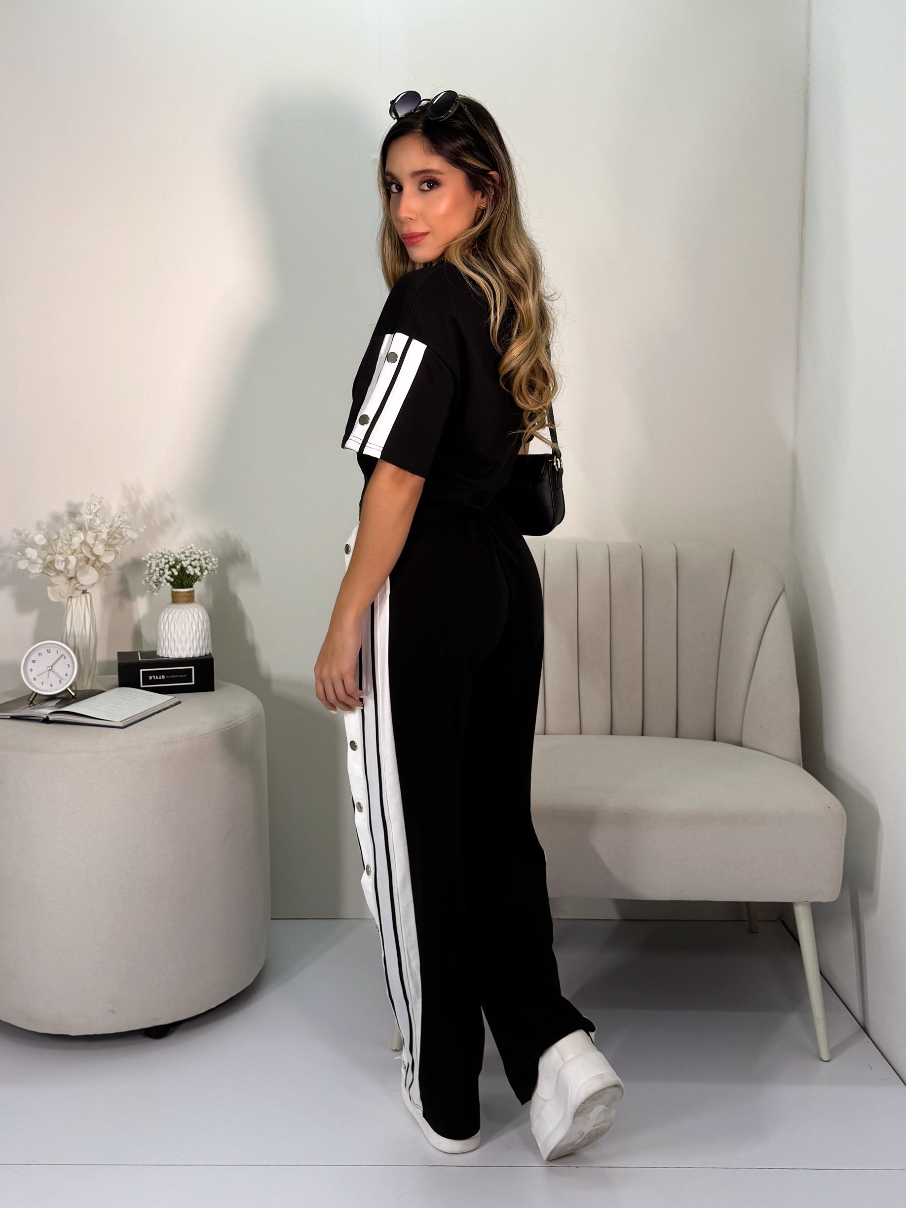 Conjunto Sport Pant Blusa Lineas Boton Negro