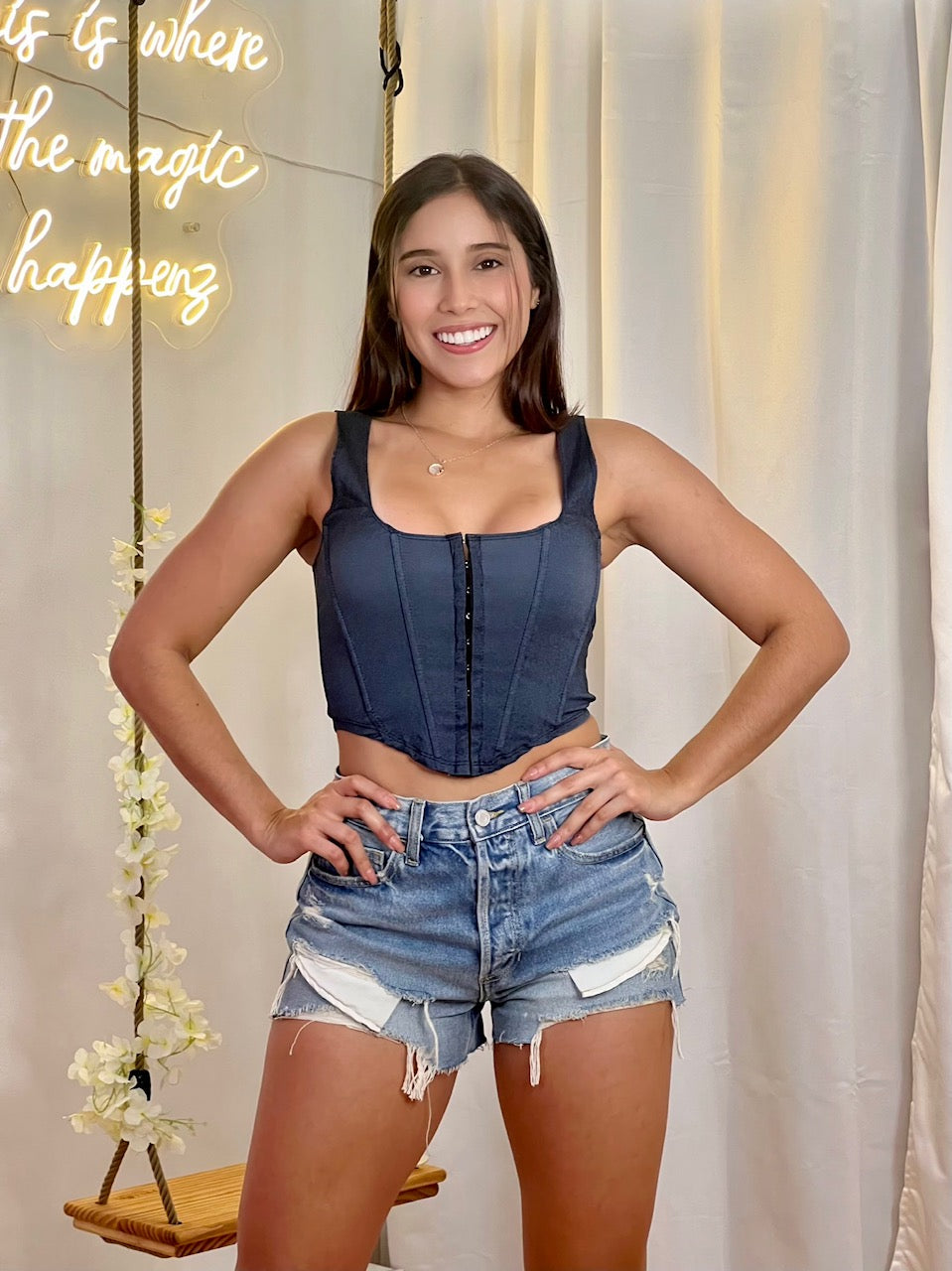 Violonchelo Corto Mom Deshilachado Azul Claro