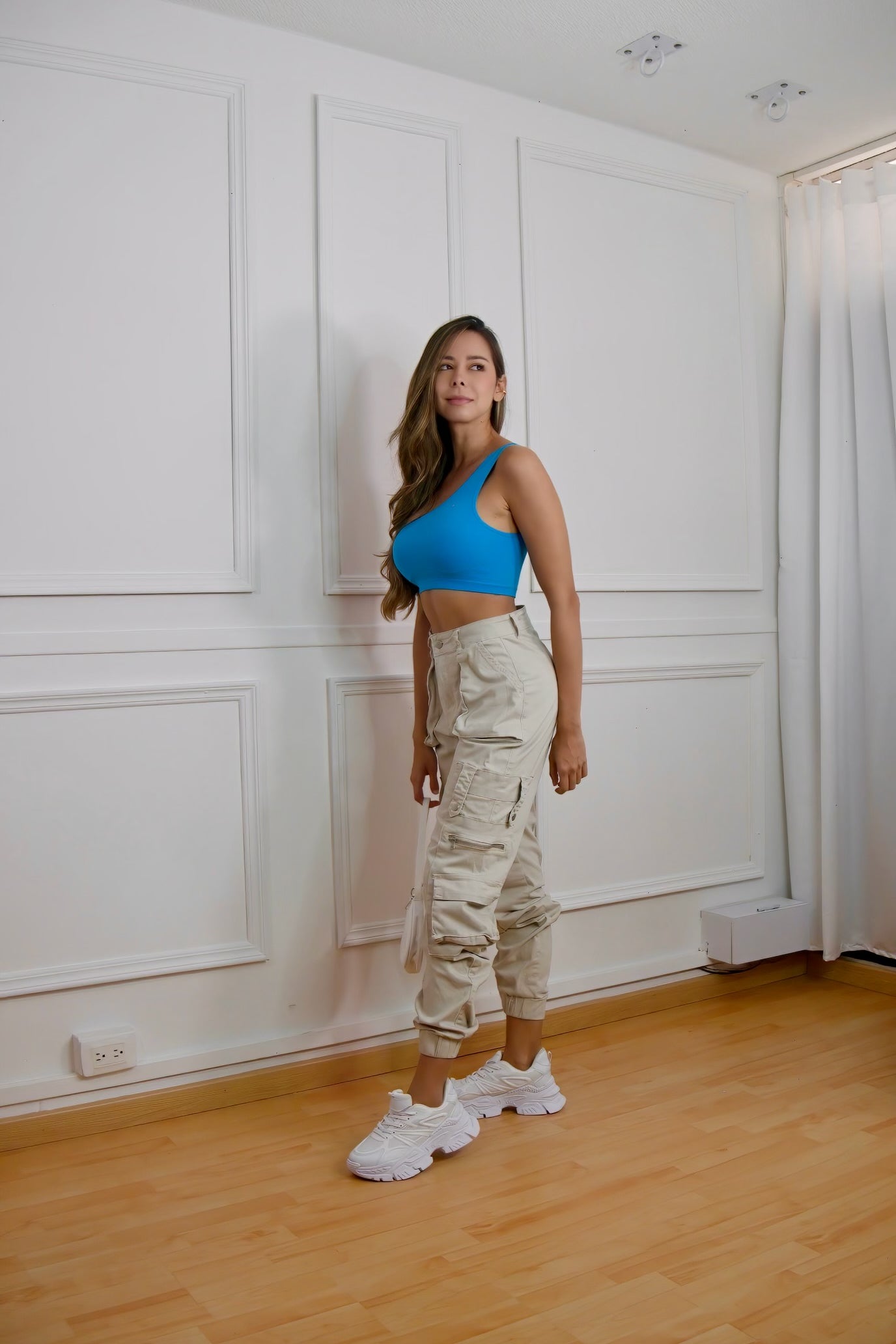 Crop Top Un Hombro Azul