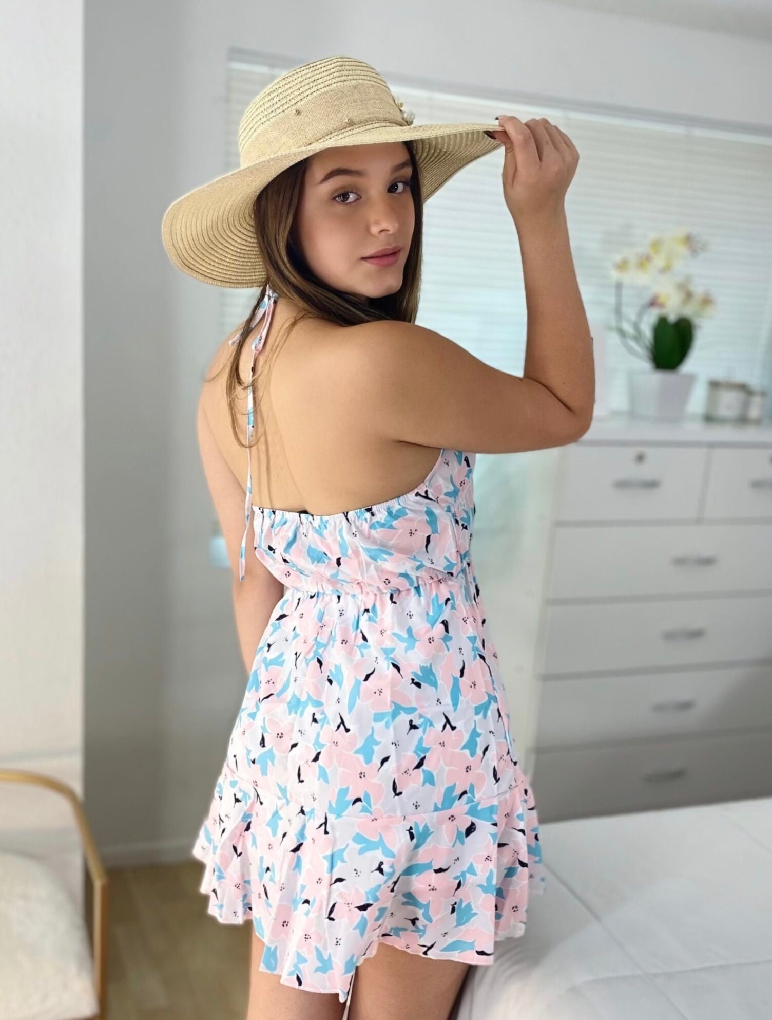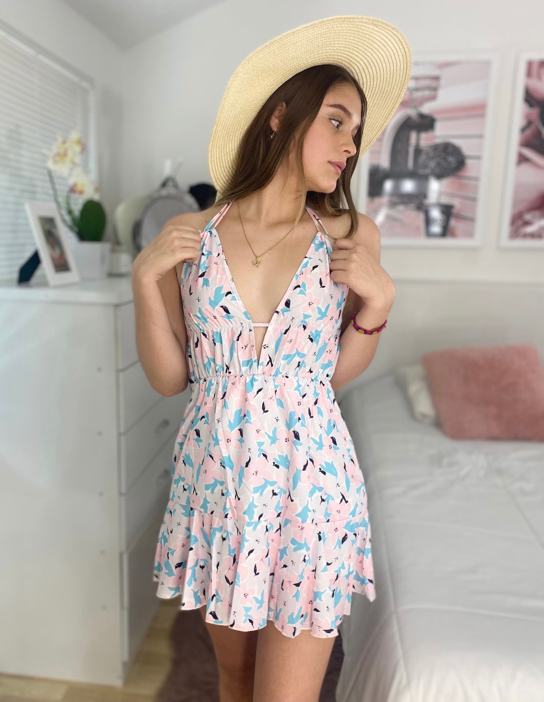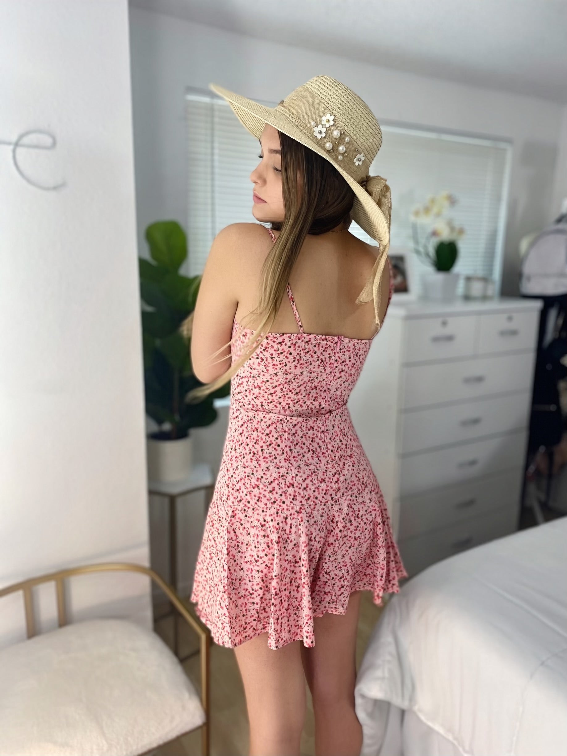 Vestido Floral Tiras Rosado