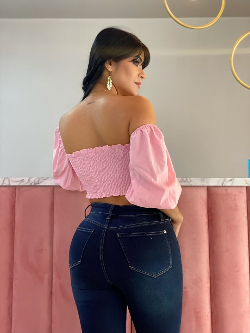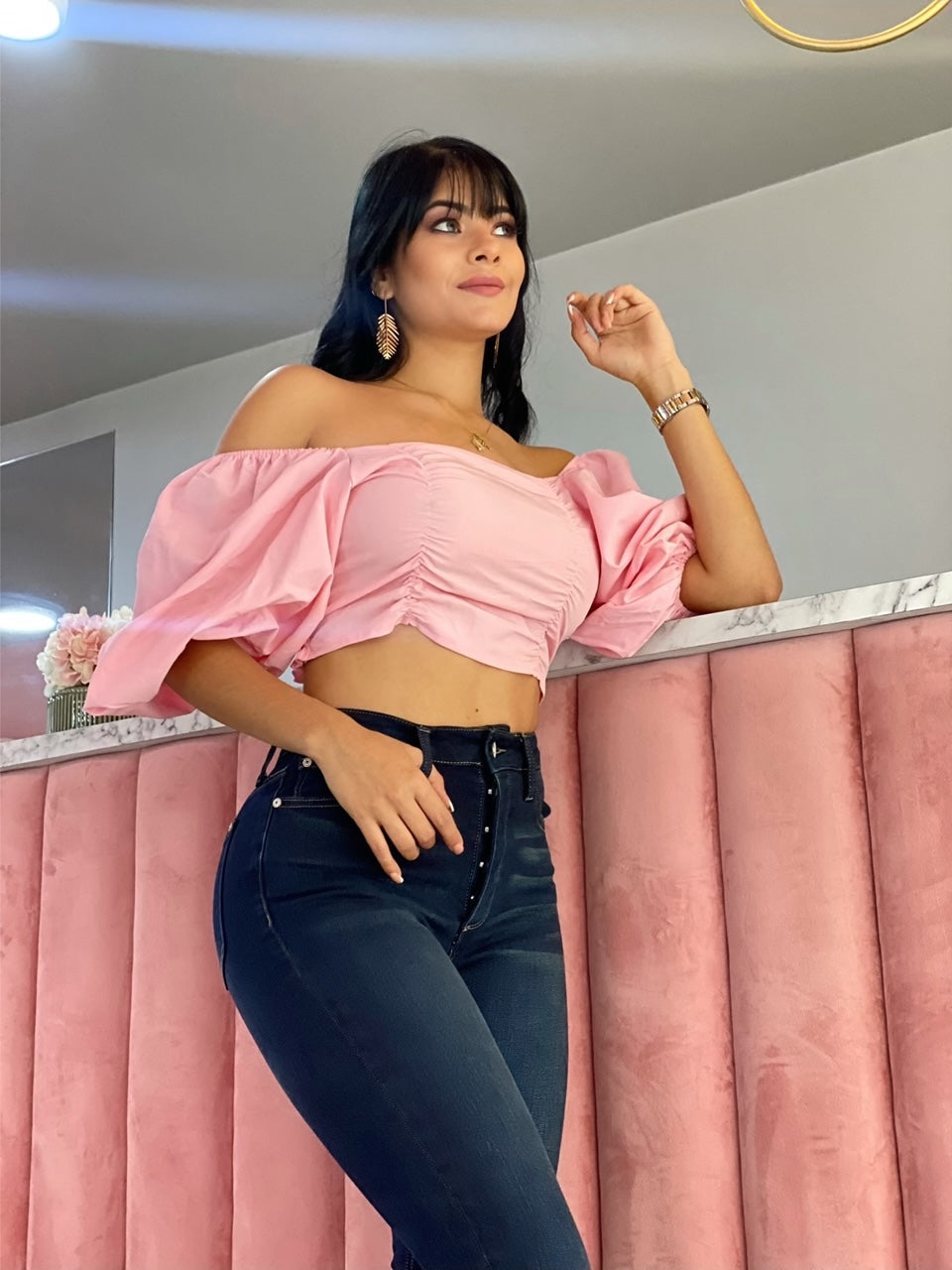 BLUSA TOP ROSA MANGA FAROL