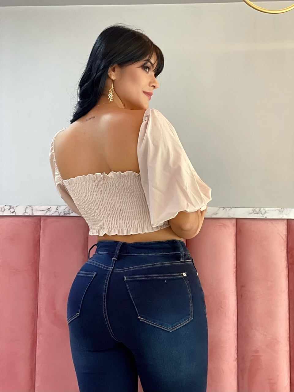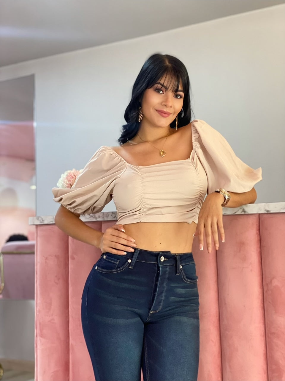 BLUSA NEGRA MANGA LUNARES CON NUDO