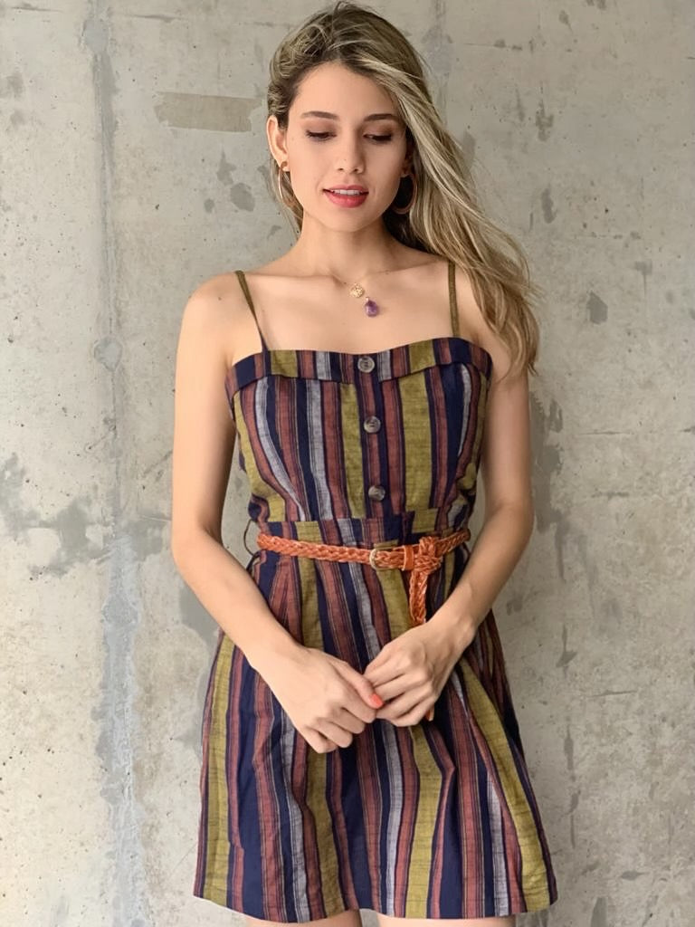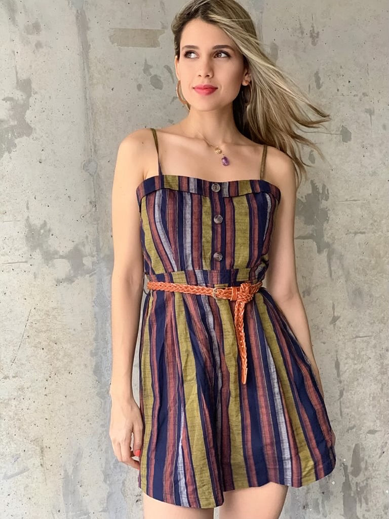 VESTIDO RAYAS AZUL / NARANJA CINTURÓN CAFÉ