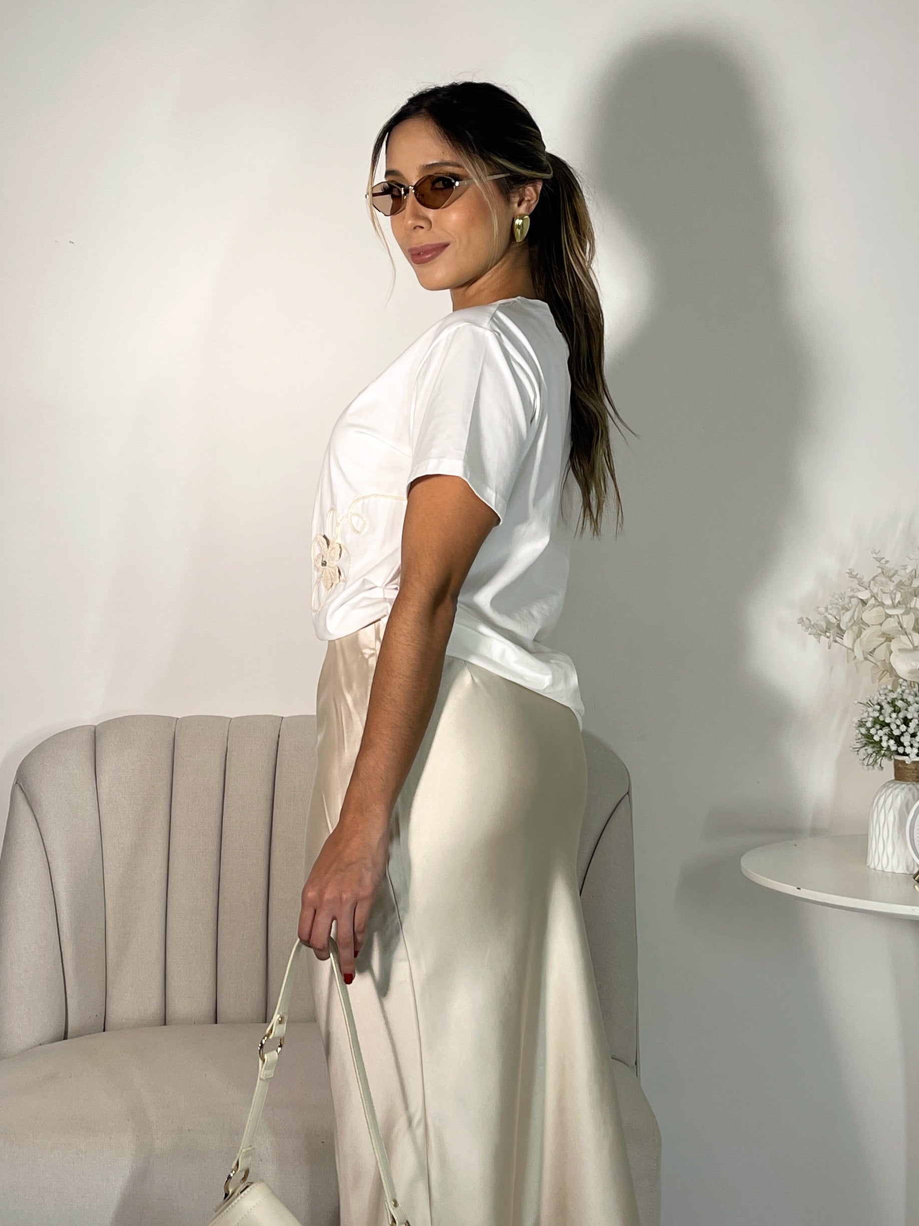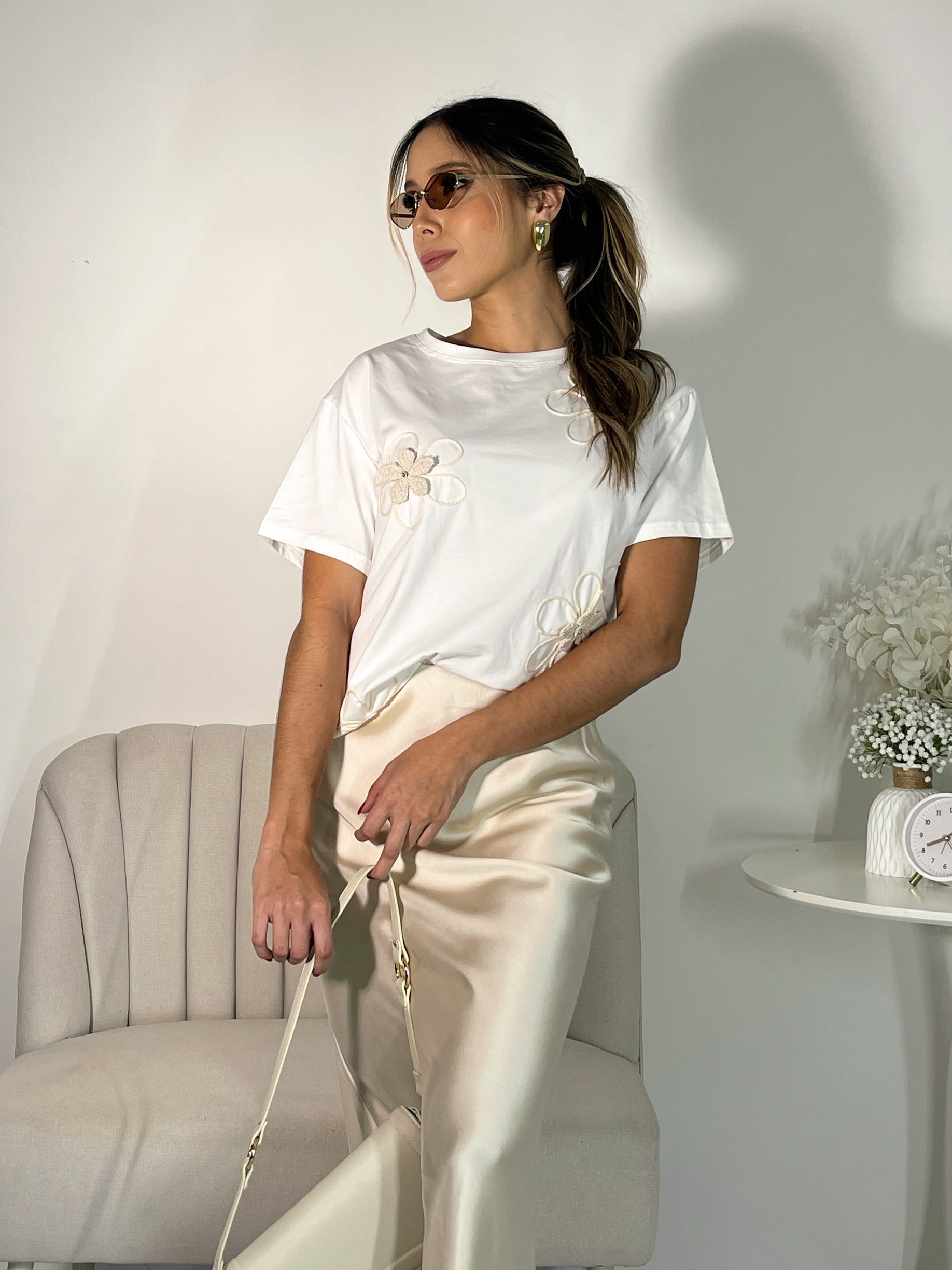 Camiseta Flores Bordadas Blanca