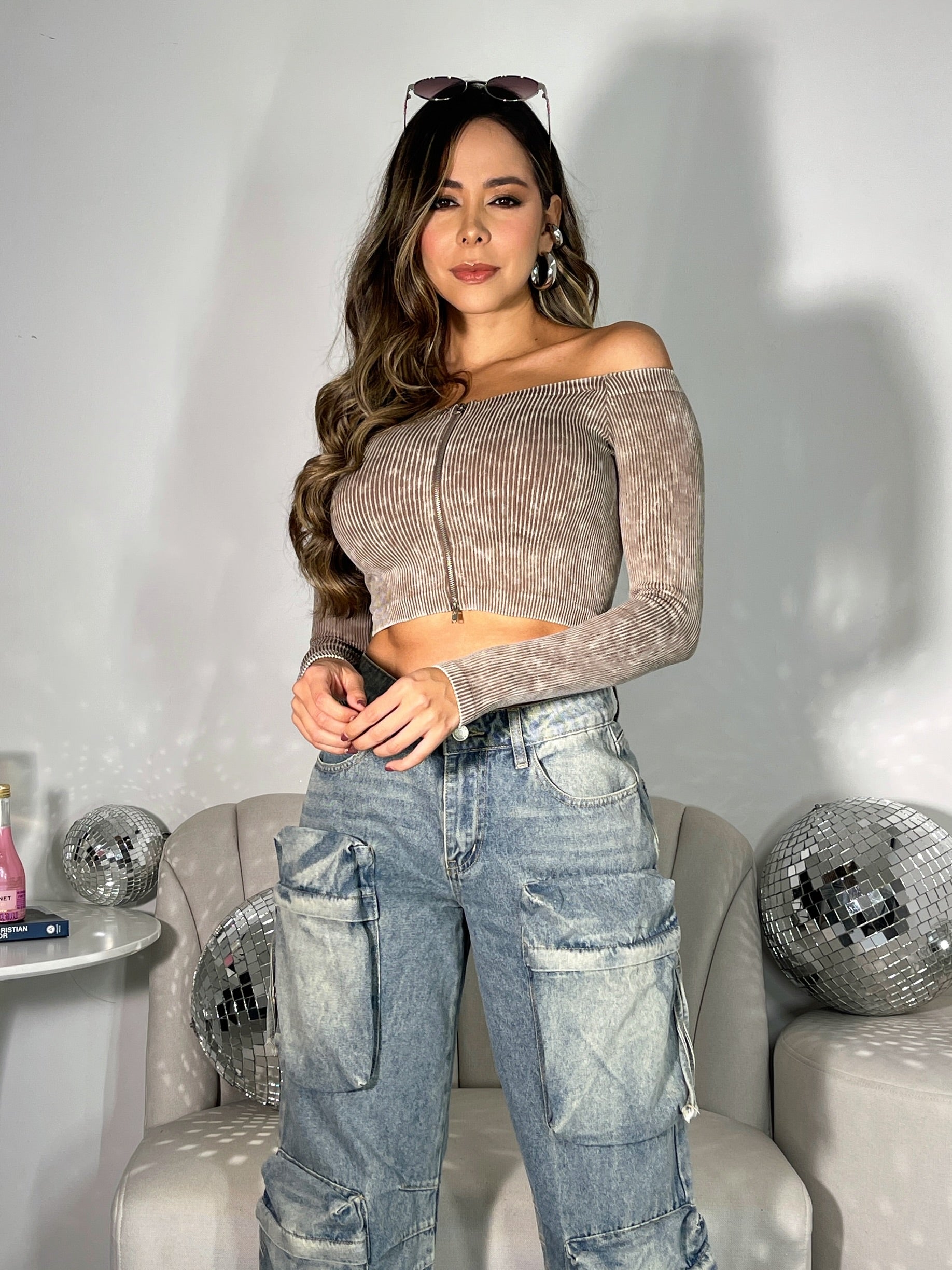 Busito Straplees Zipper Marrón