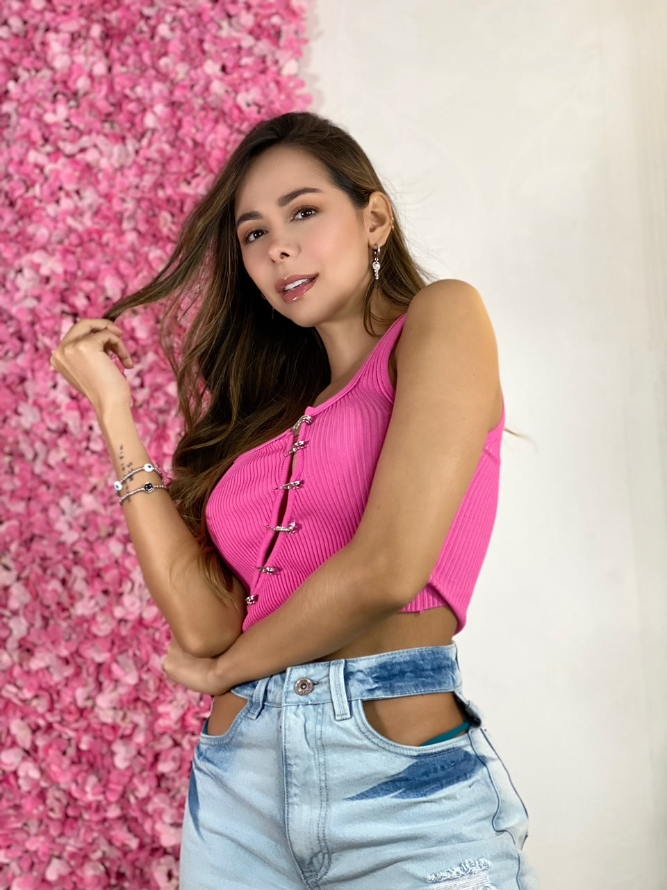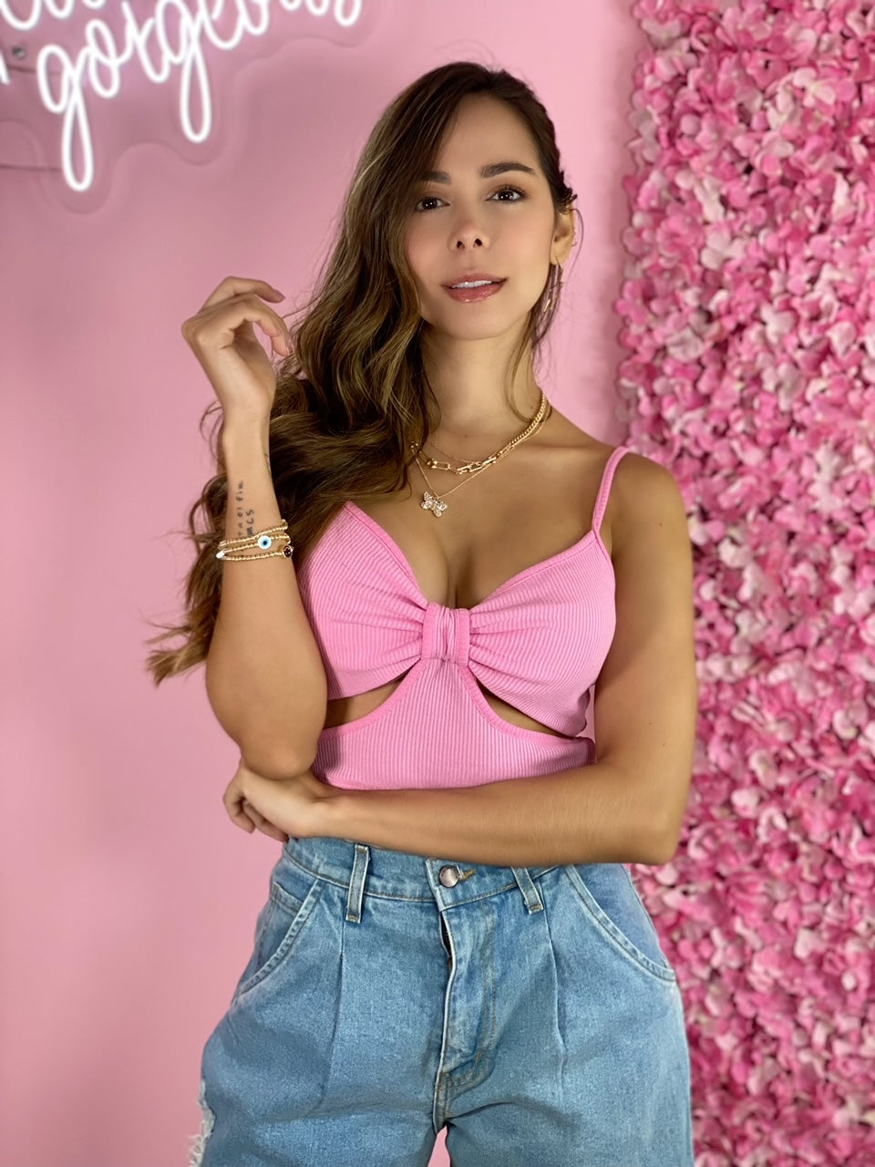 Top básico recortado rosa