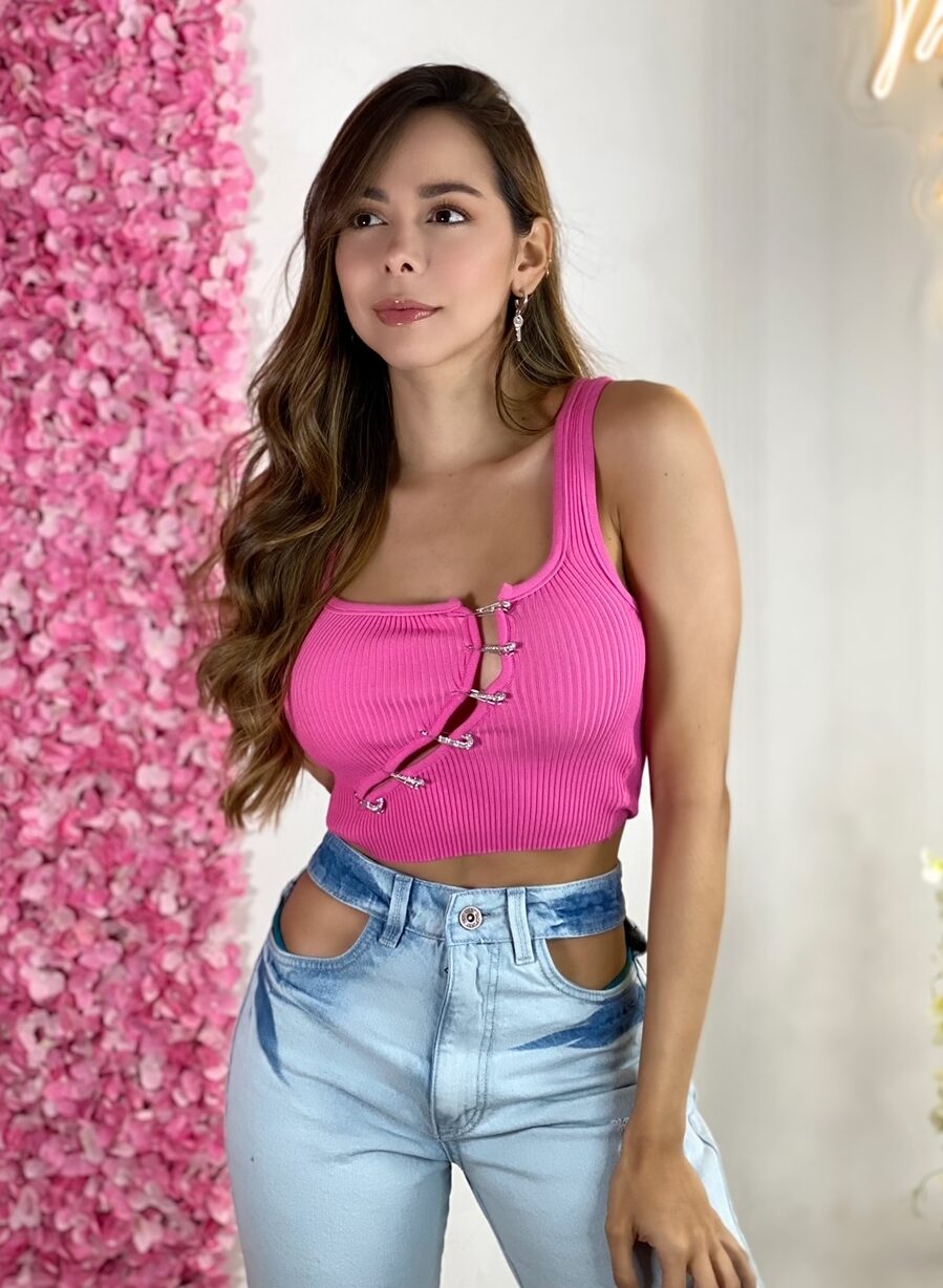 Top Abertura Gancho Fuscia