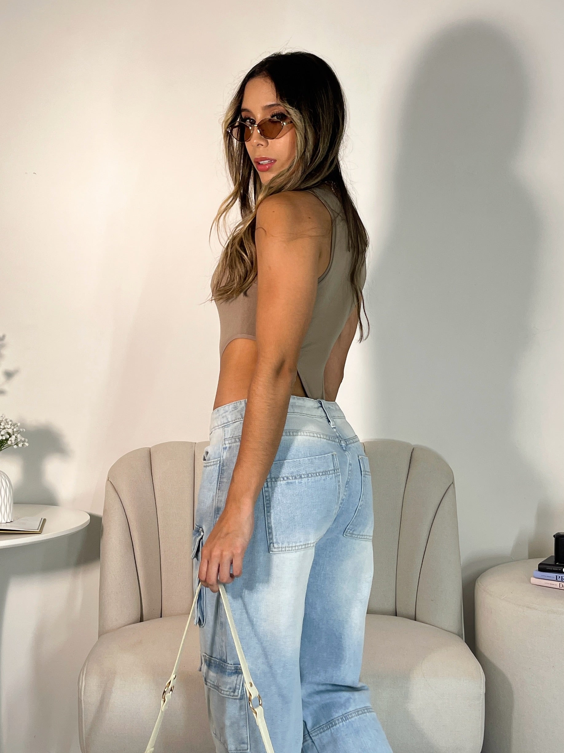 Top con Cintura Blanca Marrón Ceniza
