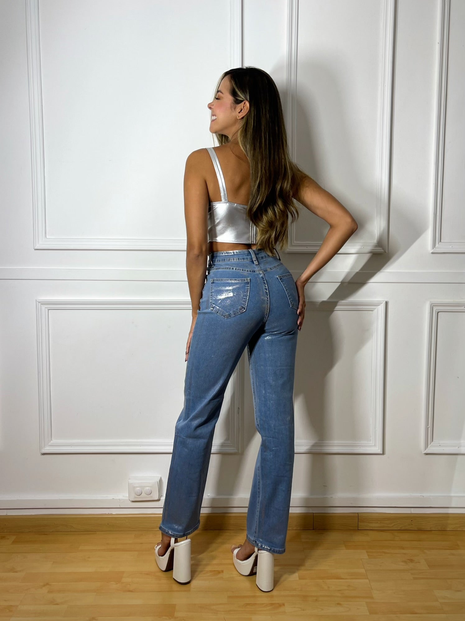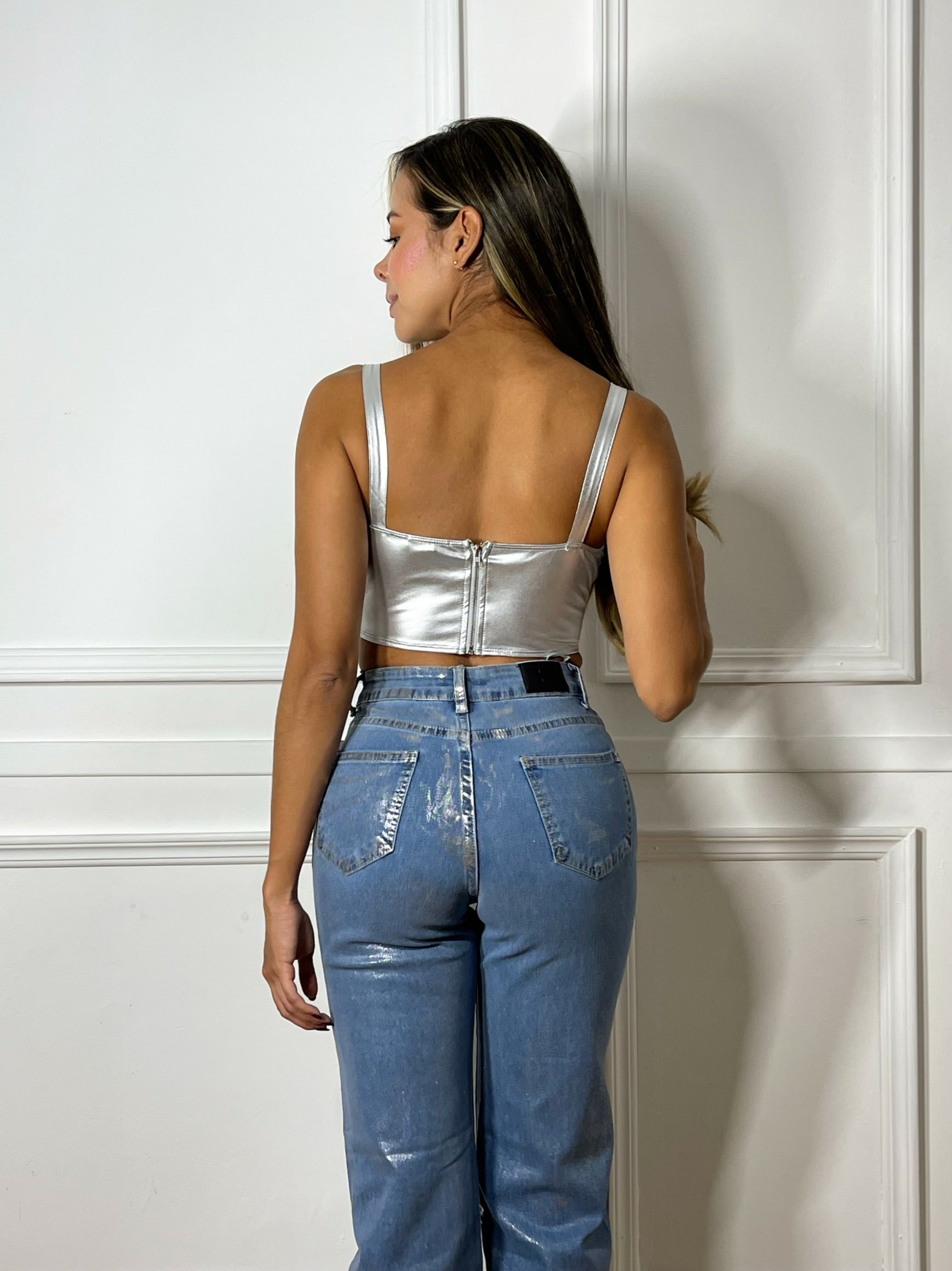Jean Stretch Foil Plateado