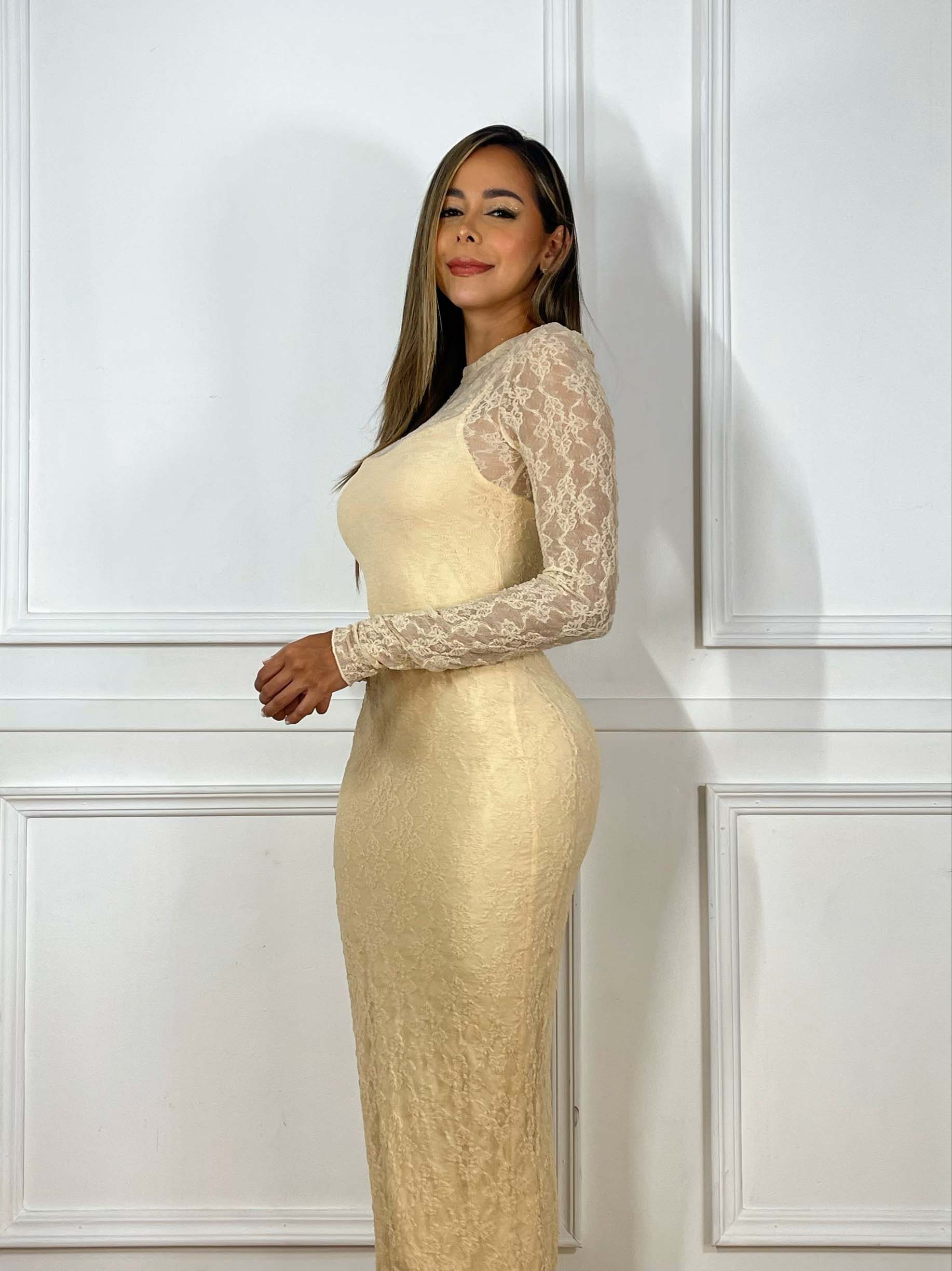 Vestido Diva Mangas Nude Lentejuelas Silver